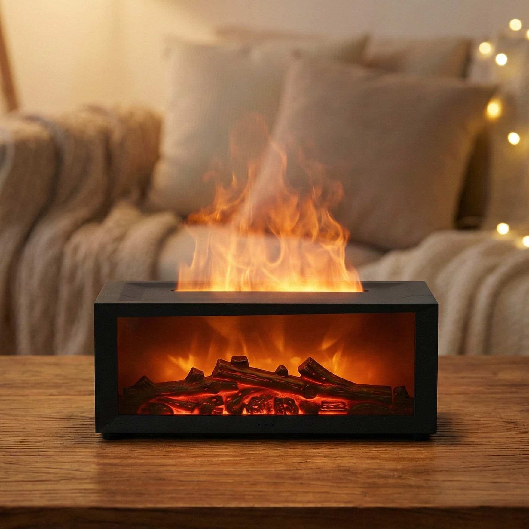 Transforme n’importe quelle pièce en espace cosy avec ce diffuseur effet flamme : une lumière LED intelligente se mélange à la brume pour créer des flammes ultra réalistes, parfaites pour une ambiance détente à la maison, au bureau ou dans une chambre.